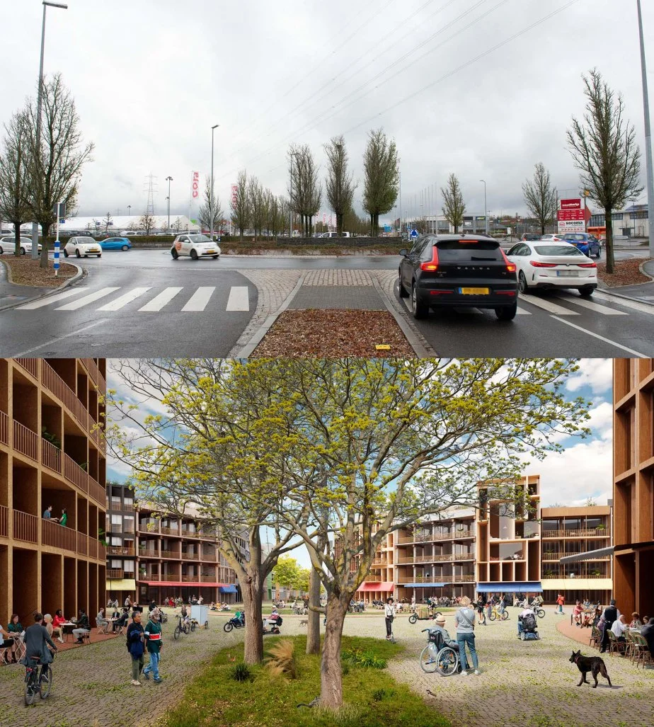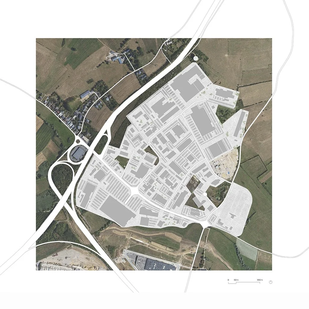 Avant - Après. Transformation d’une zone commerciale en zone de mixité fonctionnelle au Luxembourg par Master Architecture Luxembourg.